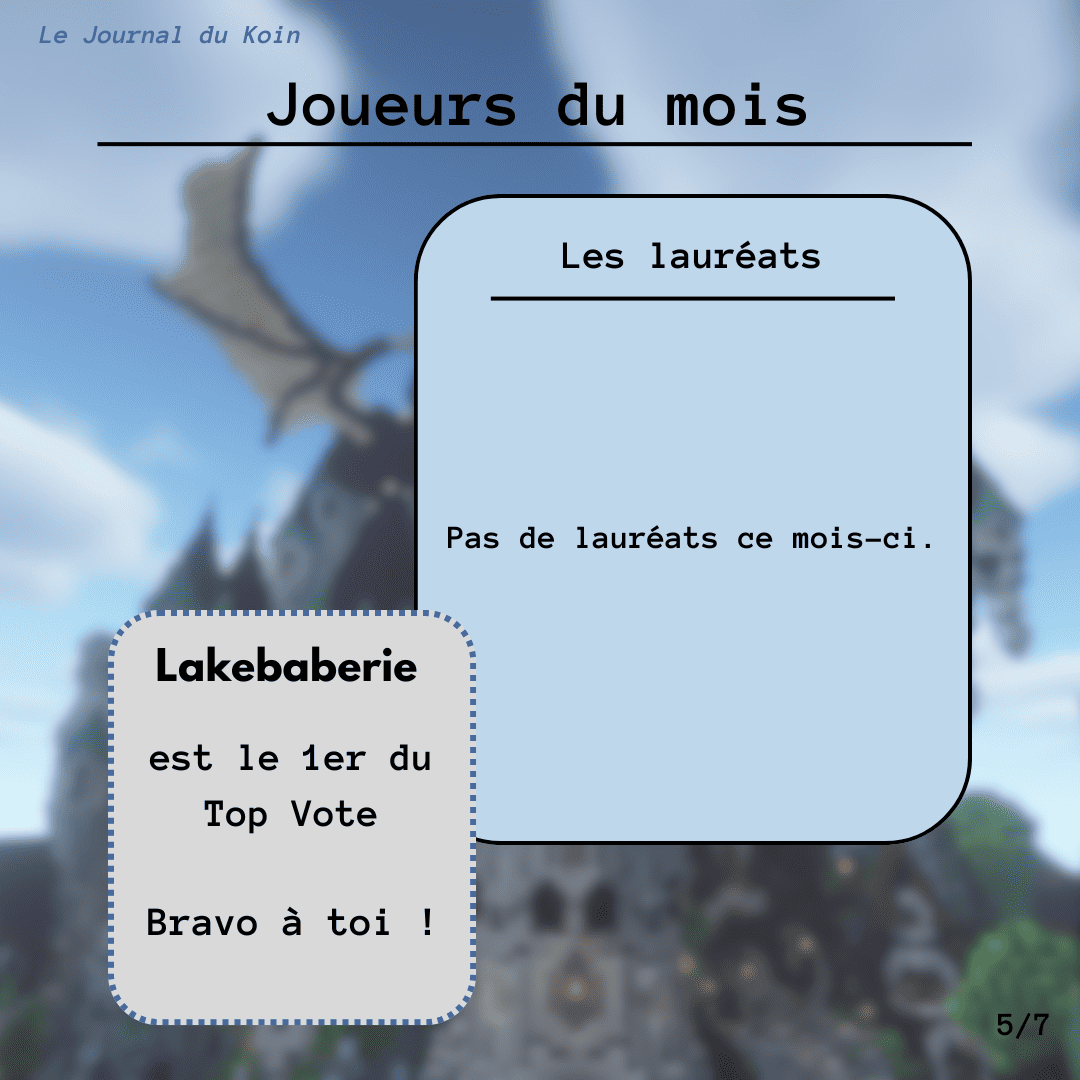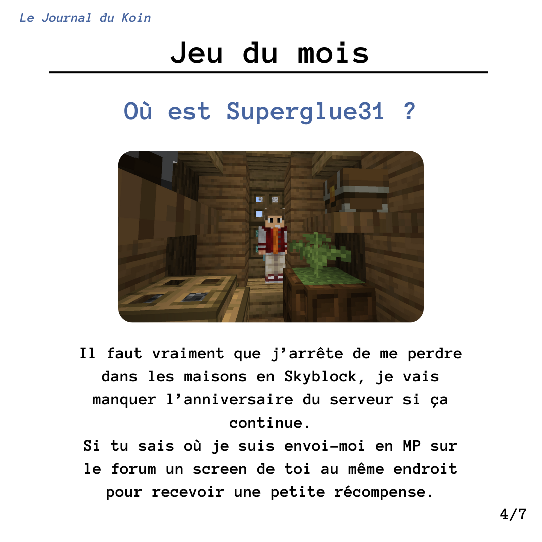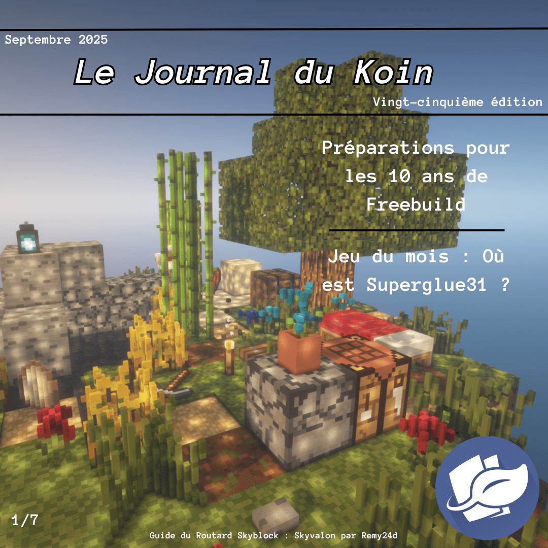 Superglue31 Posté hier à 13:41 Partager Posté hier à 13:41 Koin, on se retrouve en ce mois de rentrée pour un nouveau numéro de votre journal favori. Bonne lecture ! Révélation C'est tout pour aujourd'hui mais pas d'inquiétude on se retrouve le mois prochain pour un nouveau numéro plein de surprises . N'hésitez pas à me proposer des demandes d'interviews ou d'annonces (tout serveur confondu), je suis preneur ! 2 Citer Lien vers le commentaire Partager sur d’autres sites More sharing options...